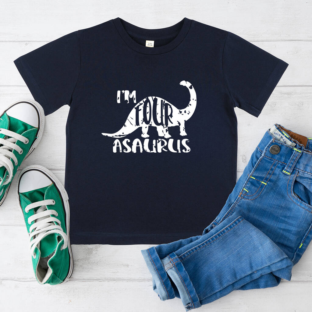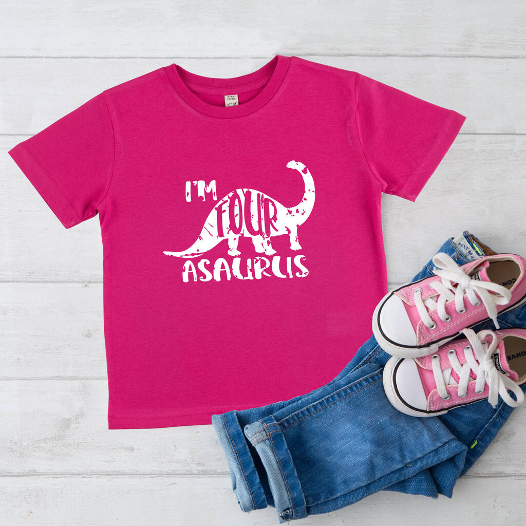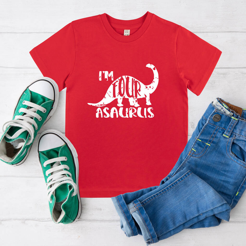 The birthday child will be proud to wear their Fourasaurus tshirt while celebrating their 4th birthday