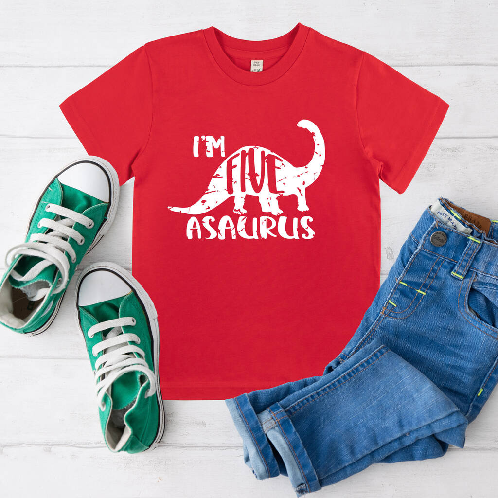 The birthday child will be proud to wear their Fiveasaurus tshirt while celebrating their extra special 5th birthday