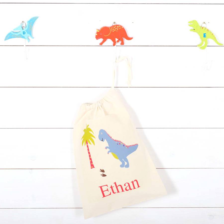 This dinosaur cotton drawstring bag is great to add some storage to your little ones bedroom.