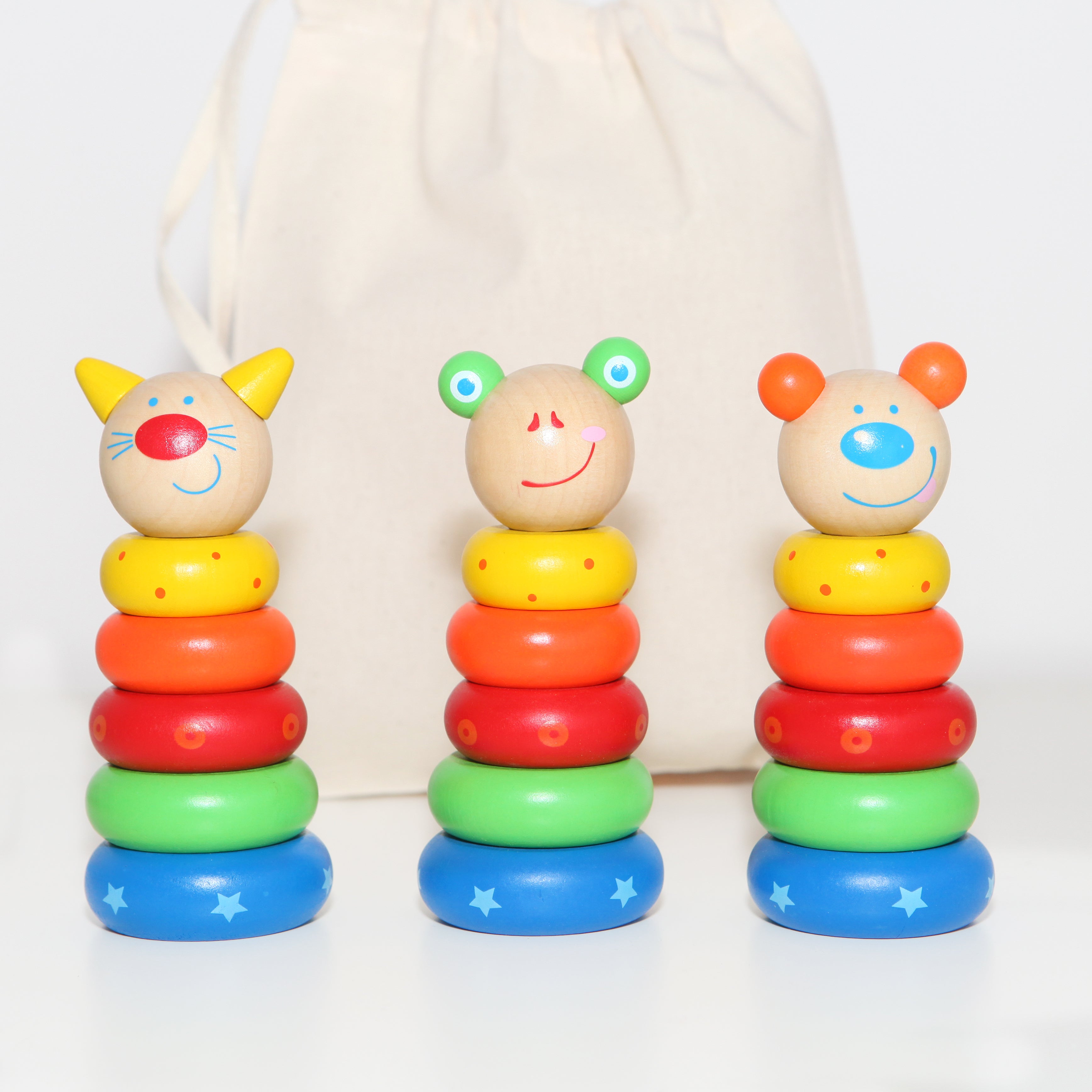 These cute frogs, bears, and cats decorate this fantastic stacking tower Children can improve their motor skills with this toy.