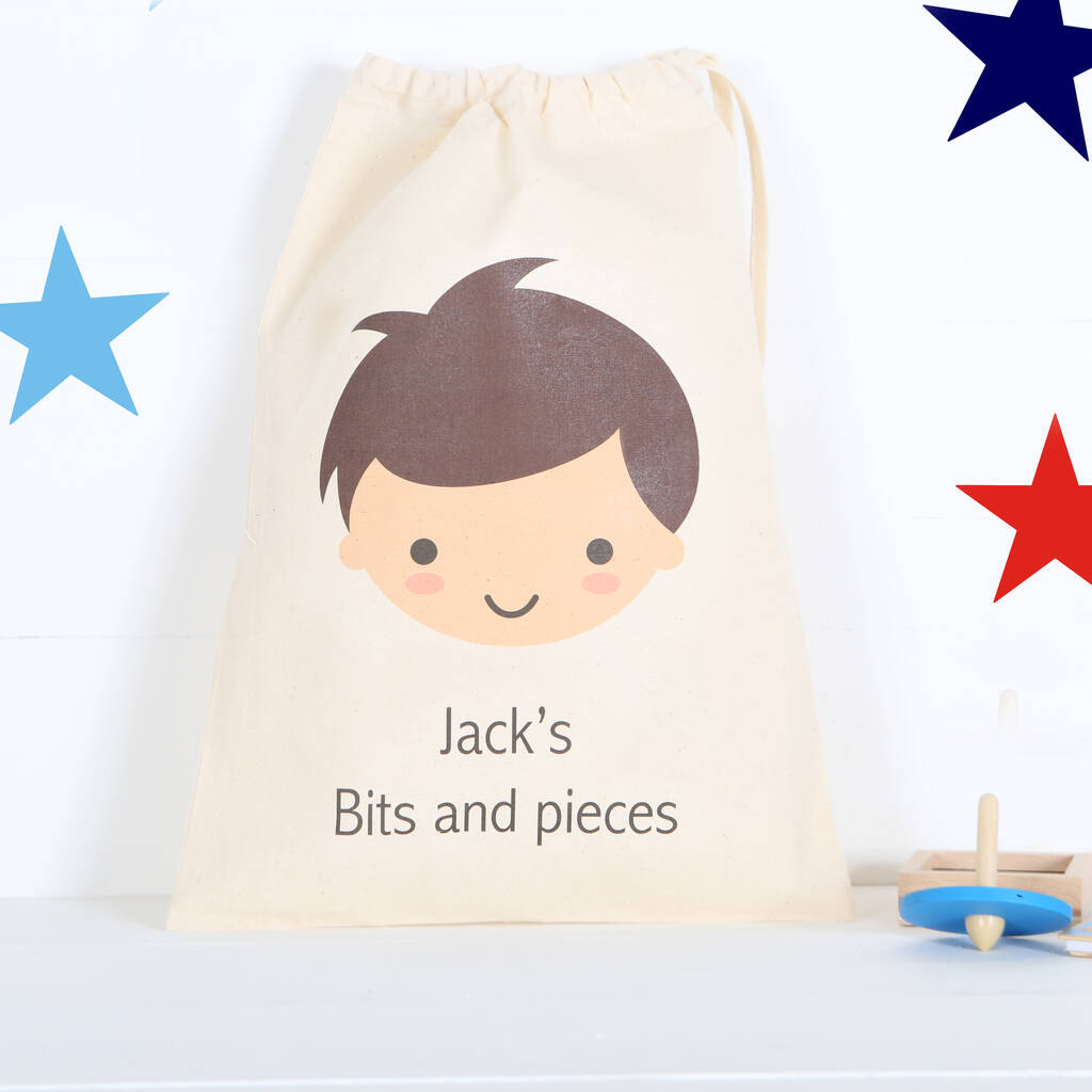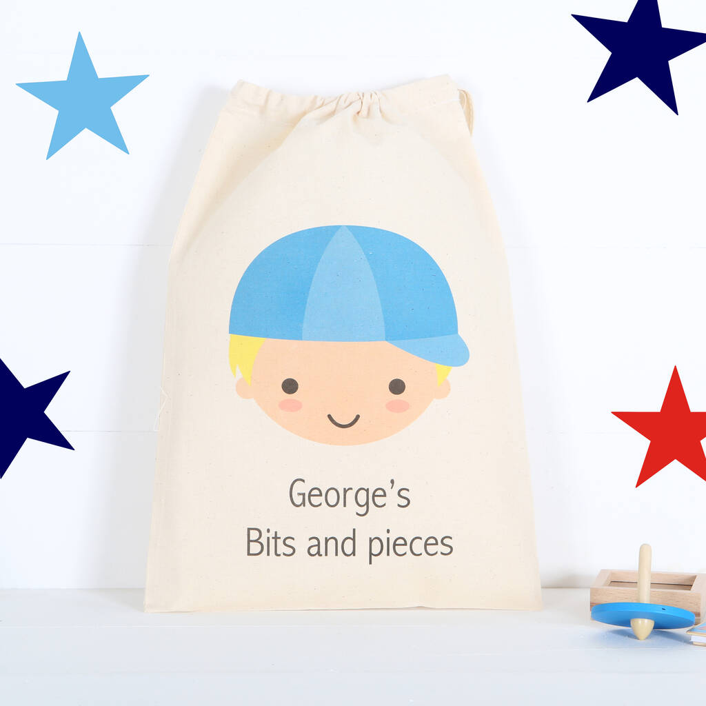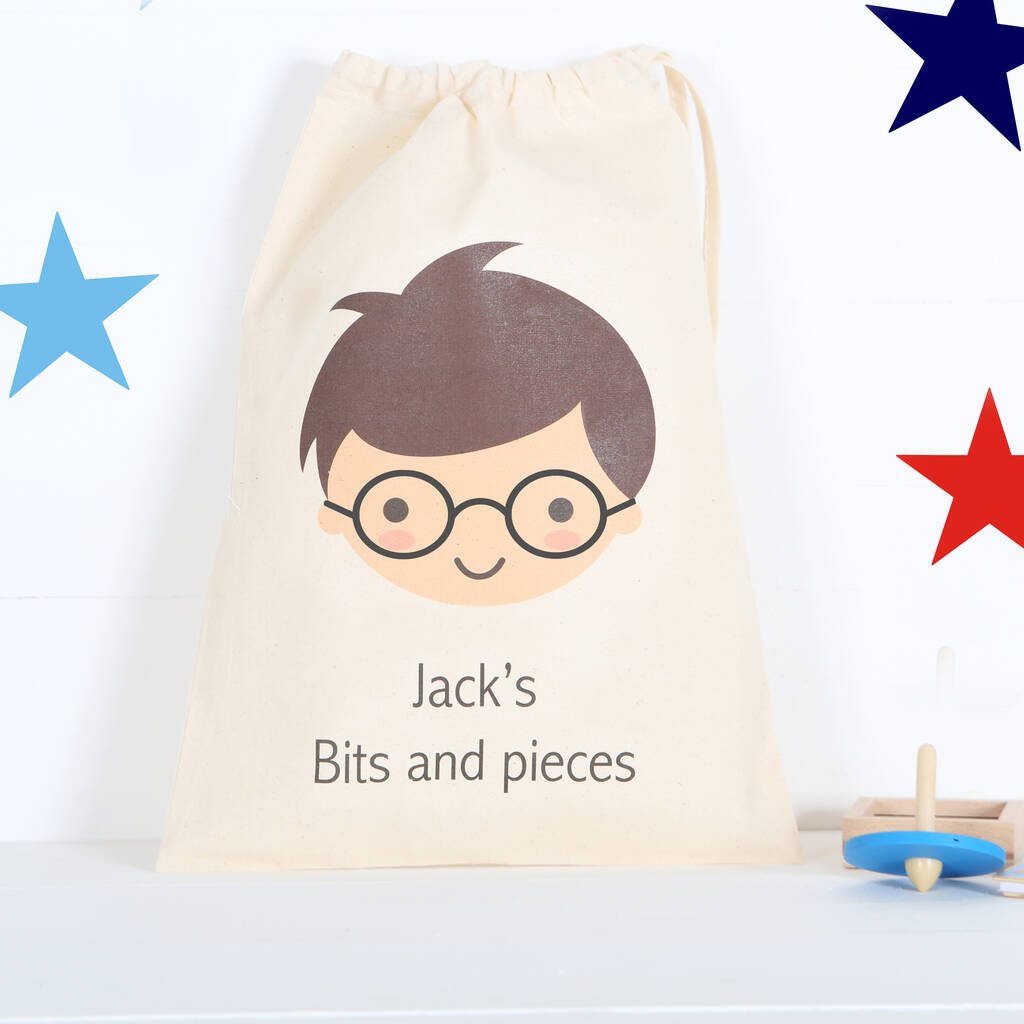 Our cute personalised cotton bags are great for boys to keep their favourite bits and pieces together