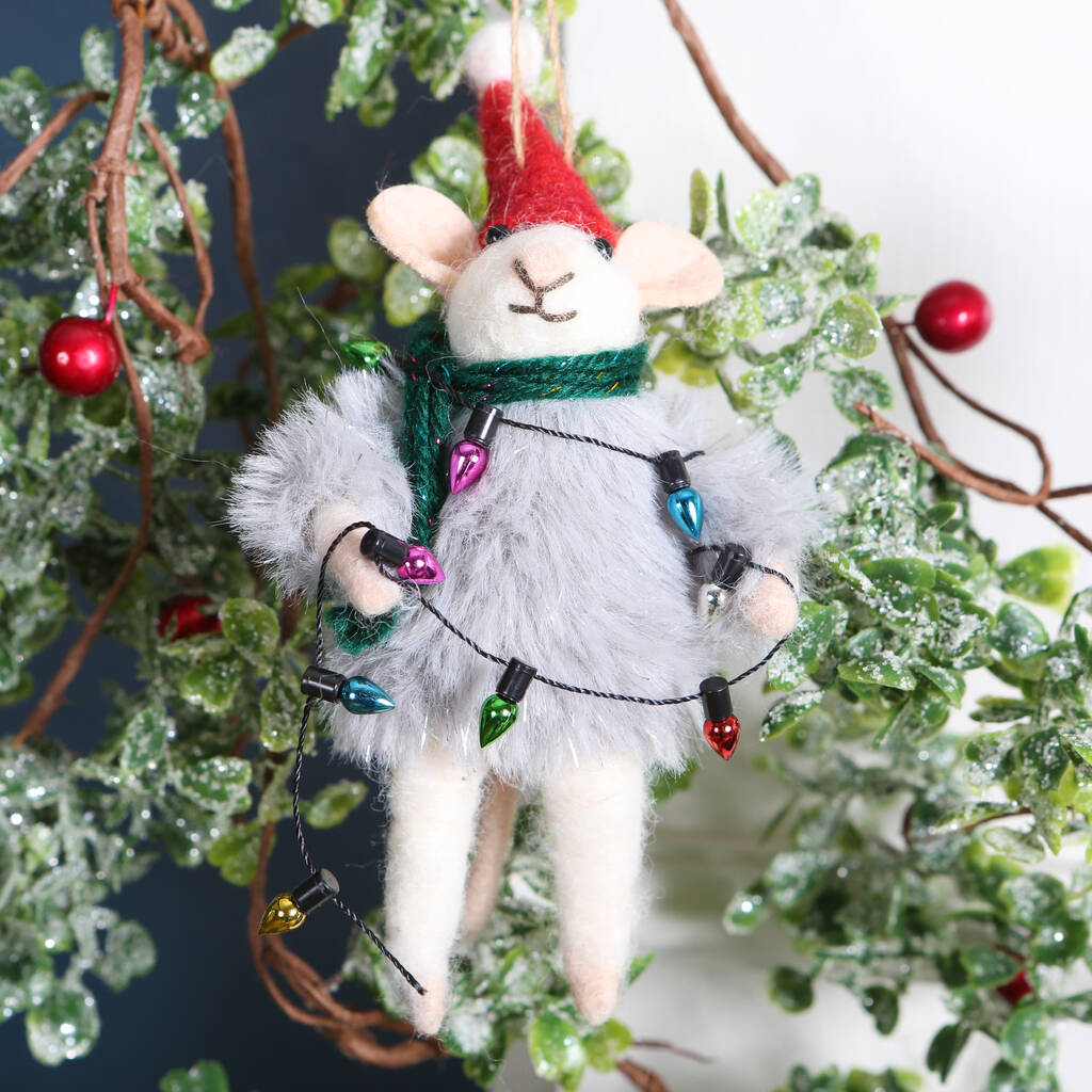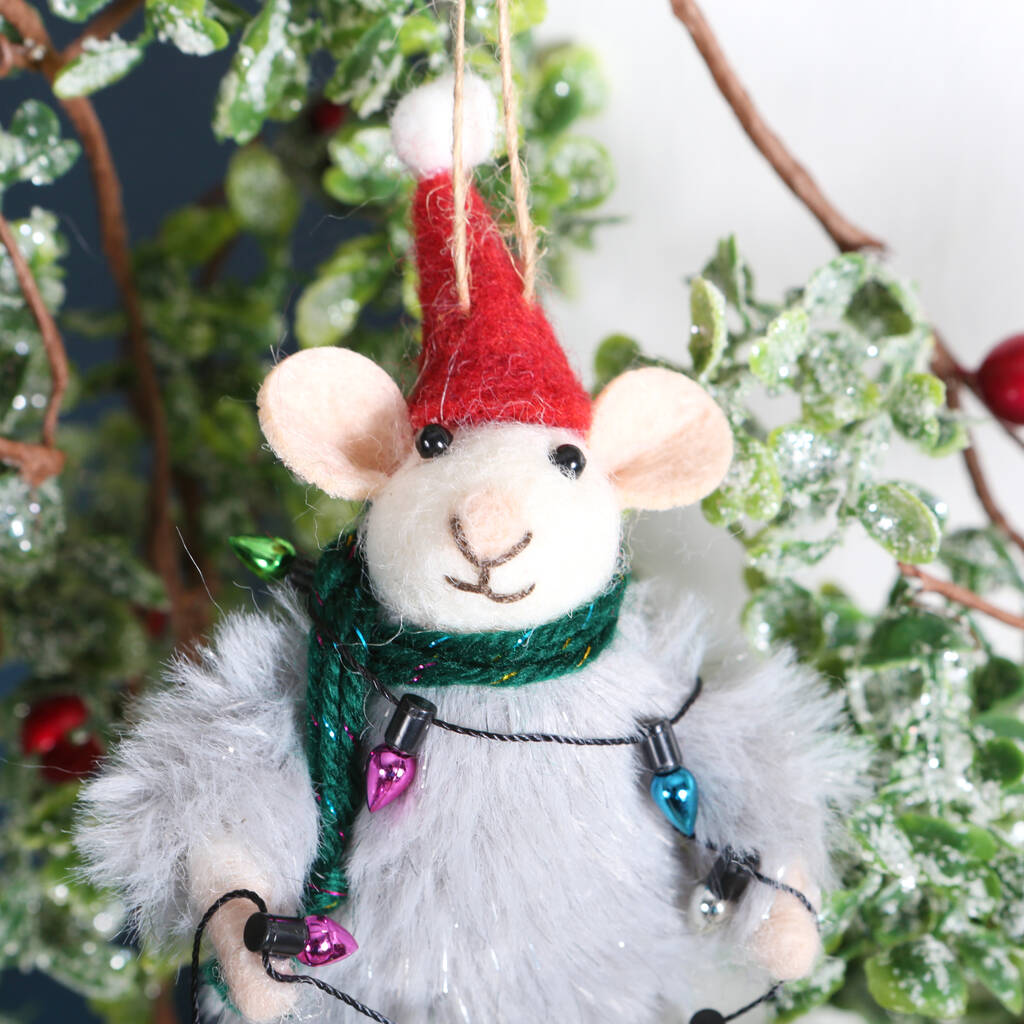 Adorable Christmas Mouse with tree lights hanging decoration
