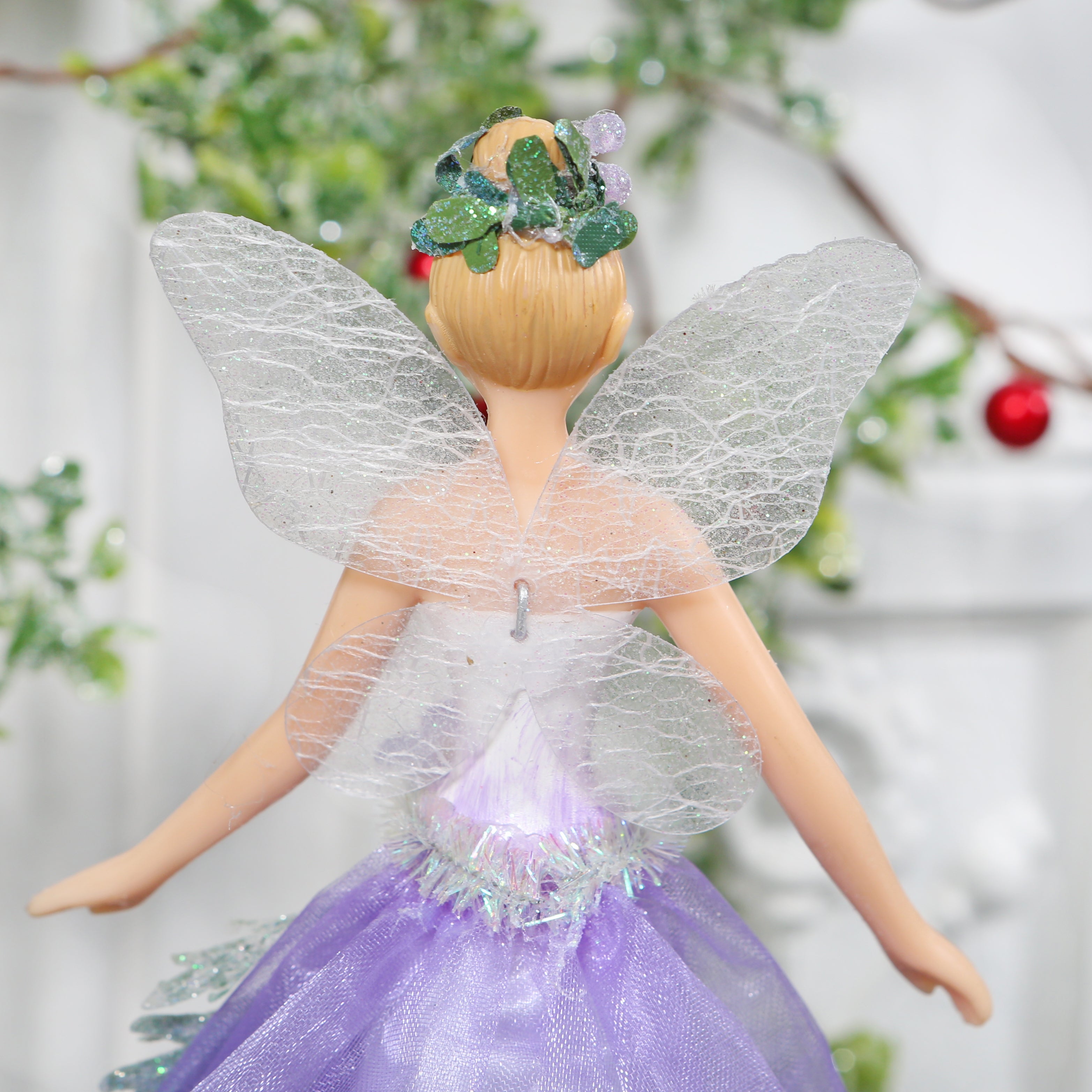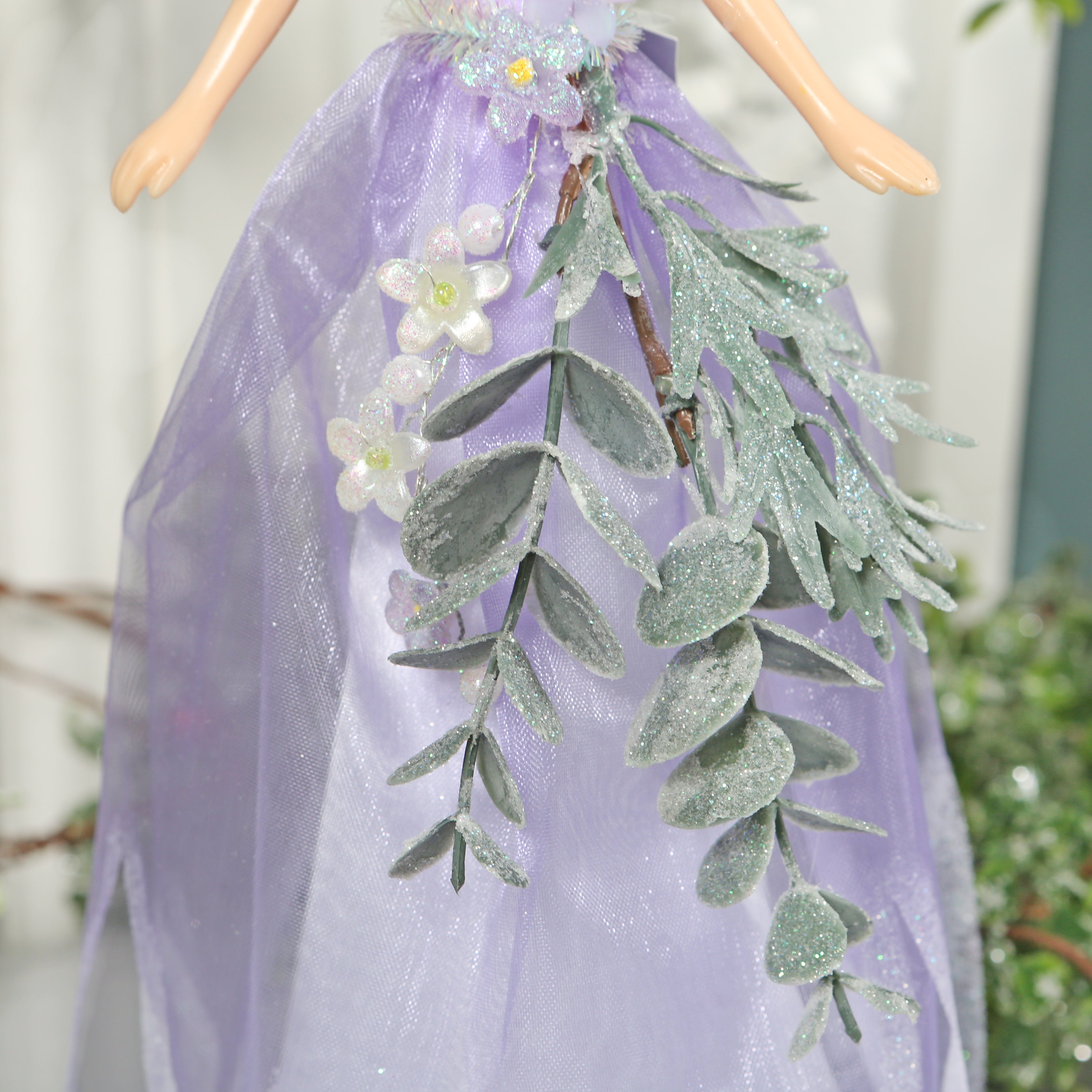 This gorgeous fairy tree topper has a beautiful lilac skirt that is embellished with artificial eucalyptus.