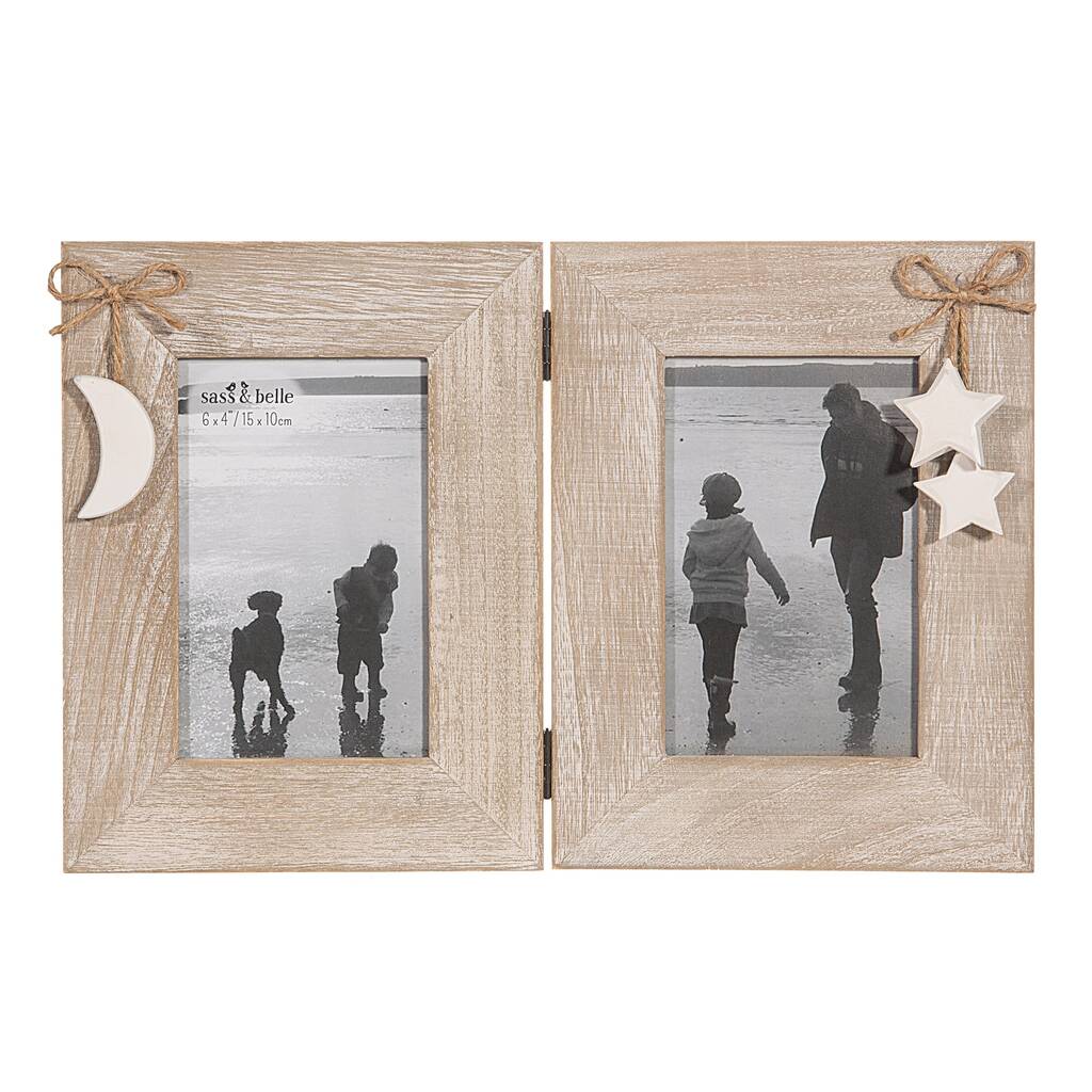 The stylish frame holds two 6 x 4 photographs,made from wood and features 2 white stars and a moon