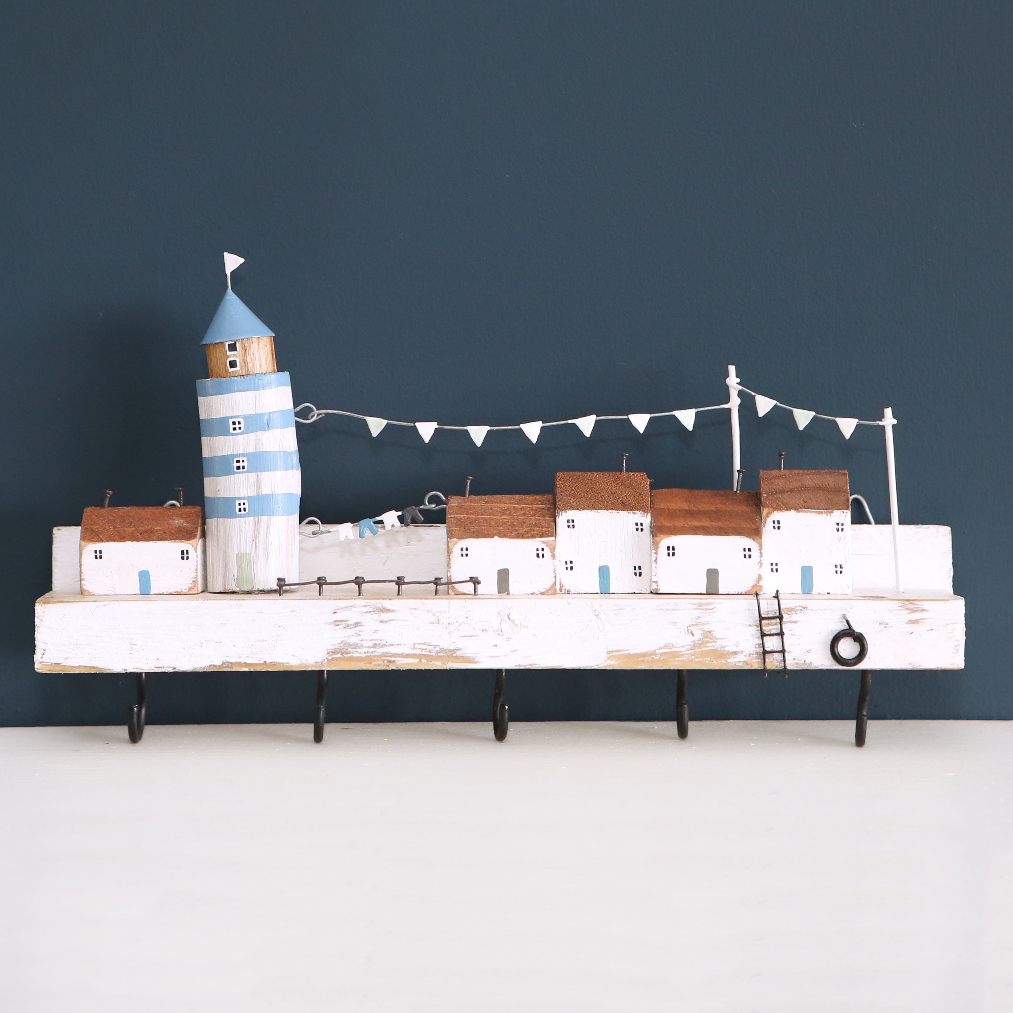 Wooden five hook key rack with lighthouse and bunting, a lovely new home or Christmas gift