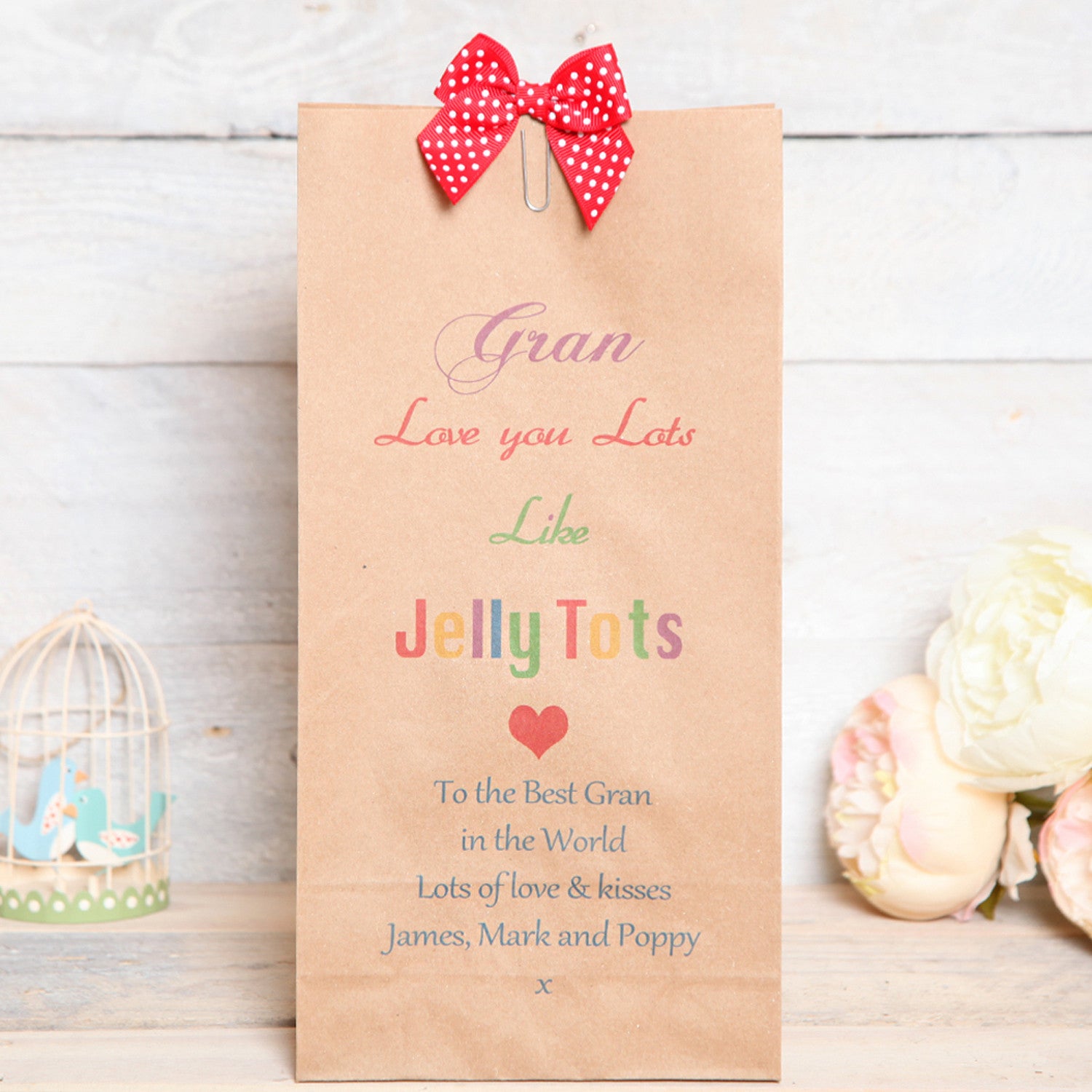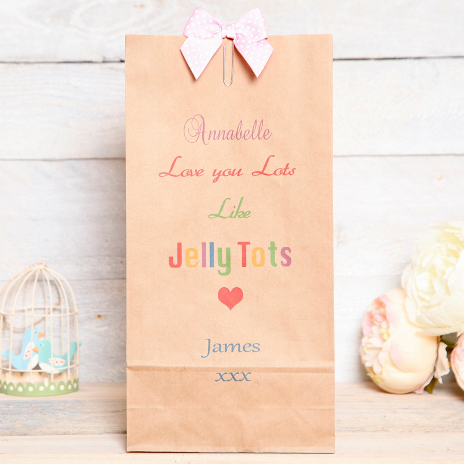 This ' I love you lots like jelly tots ' gift bag is a lovely finishing touch for your gifts. Perfect for mothers day for grans, mums and step mums.