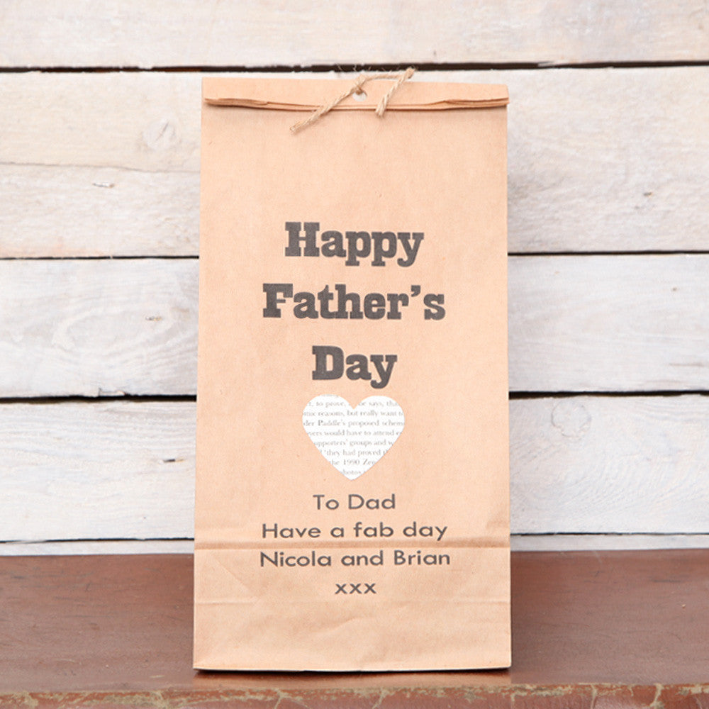 Our personalised Father's Day gift bags are a great gift wrap solution. The printed heart embellishment adds character to the bag.