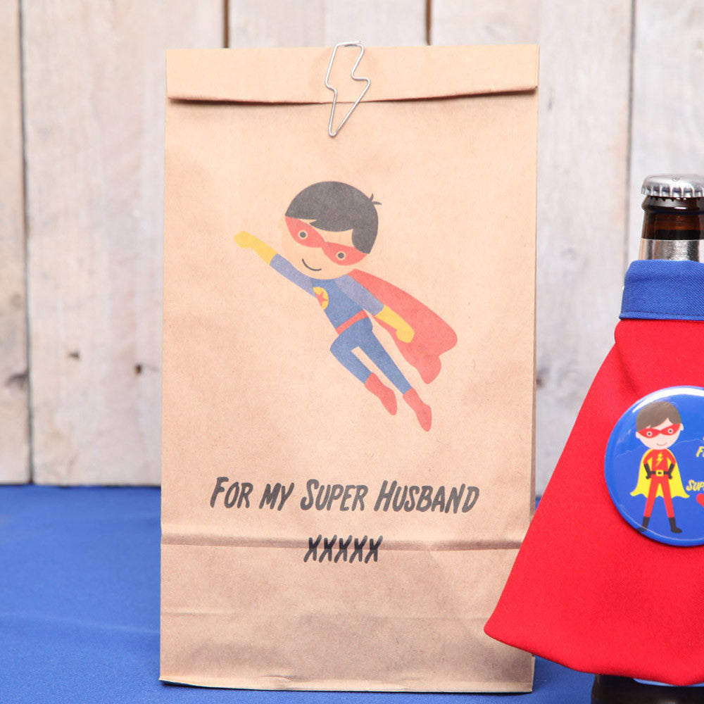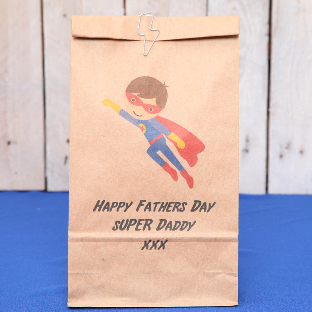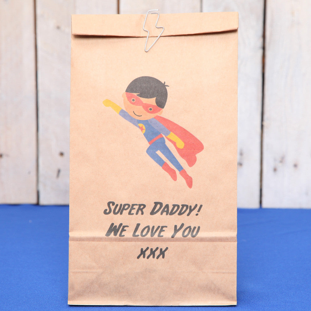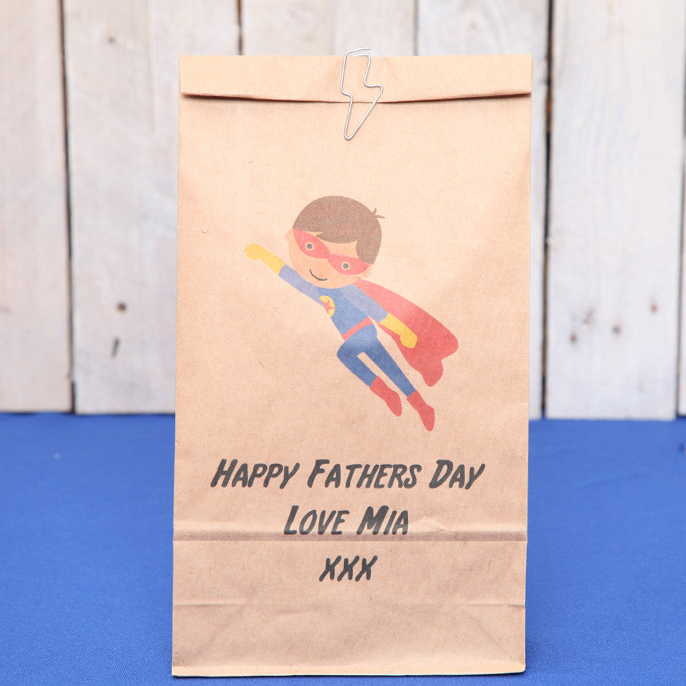 Available in a choice of hair colour and skin tone options for a truly personalised gift bag. and perfect for those super hero husbands, dads, grandpa's, brothers and uncles.