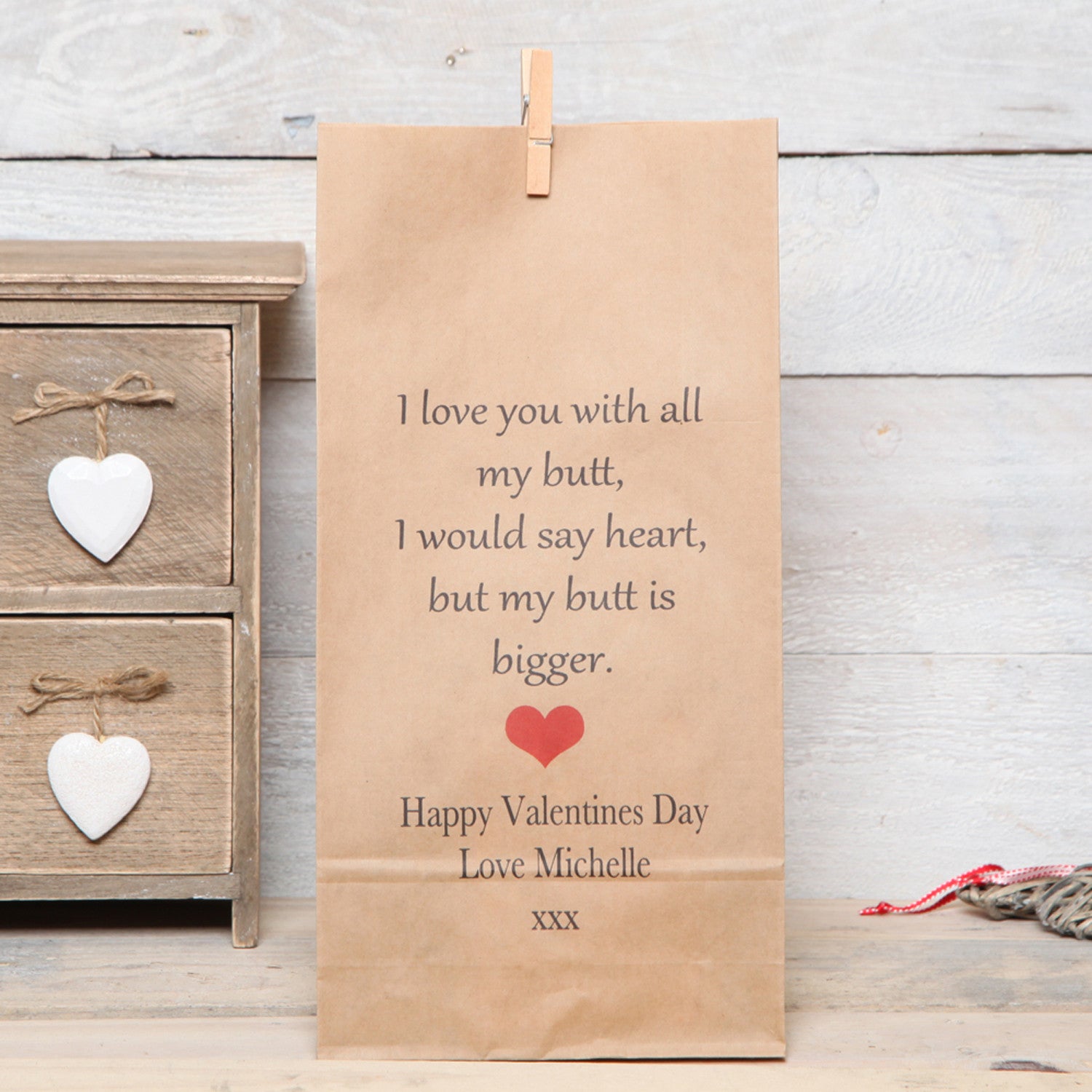 These bags make the perfect Valentines wrapping solution and are personalised with a message of your choice.
