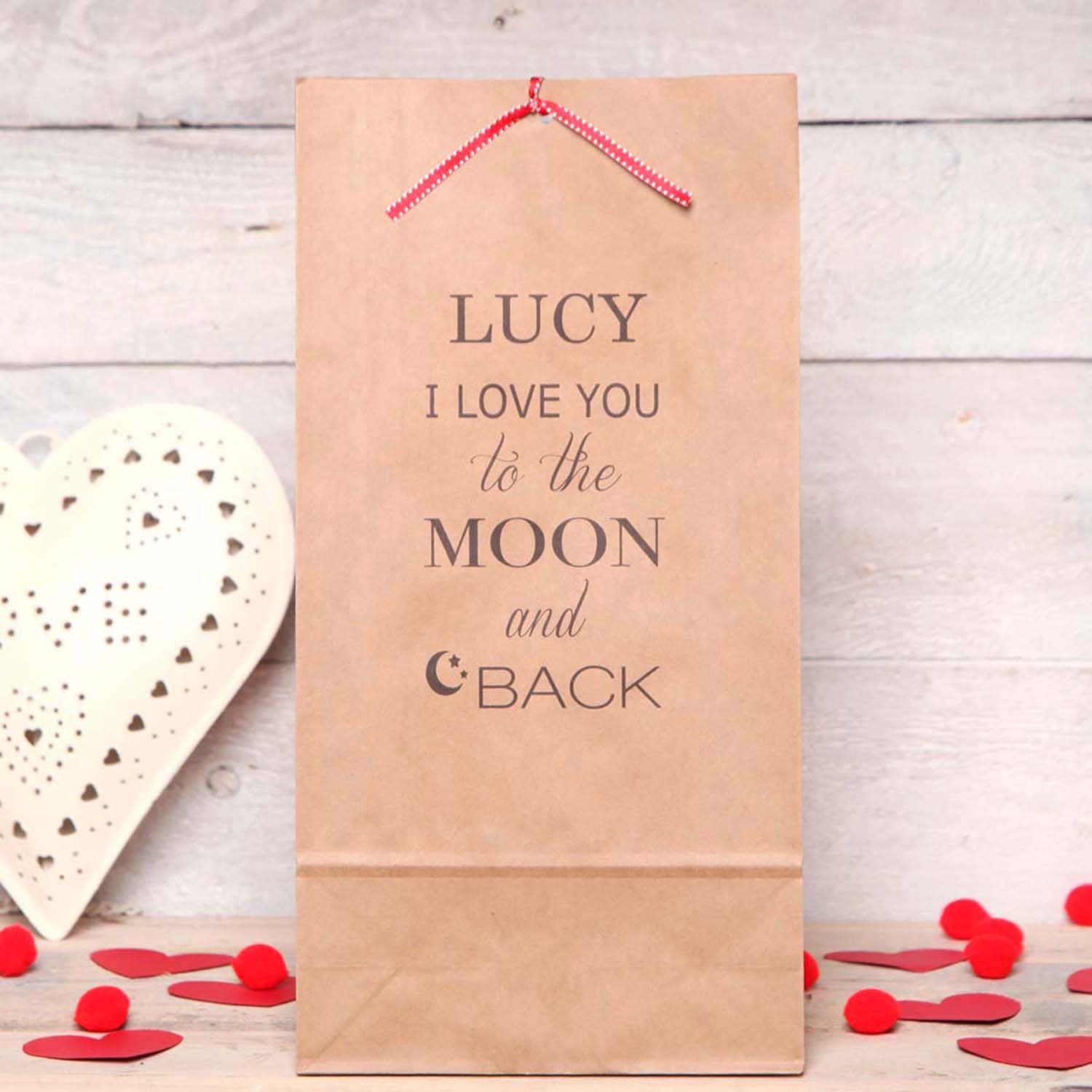 These bags make the perfect Valentines, birthday, anniversary or Christmas wrapping solution and are personalised with the recipients name to the top of the bag.