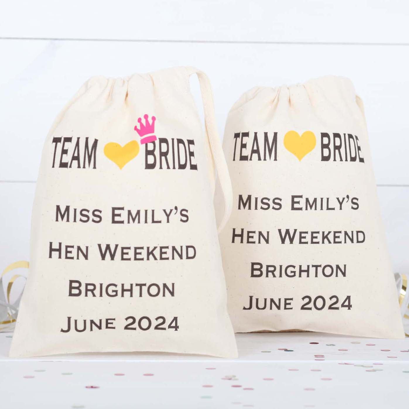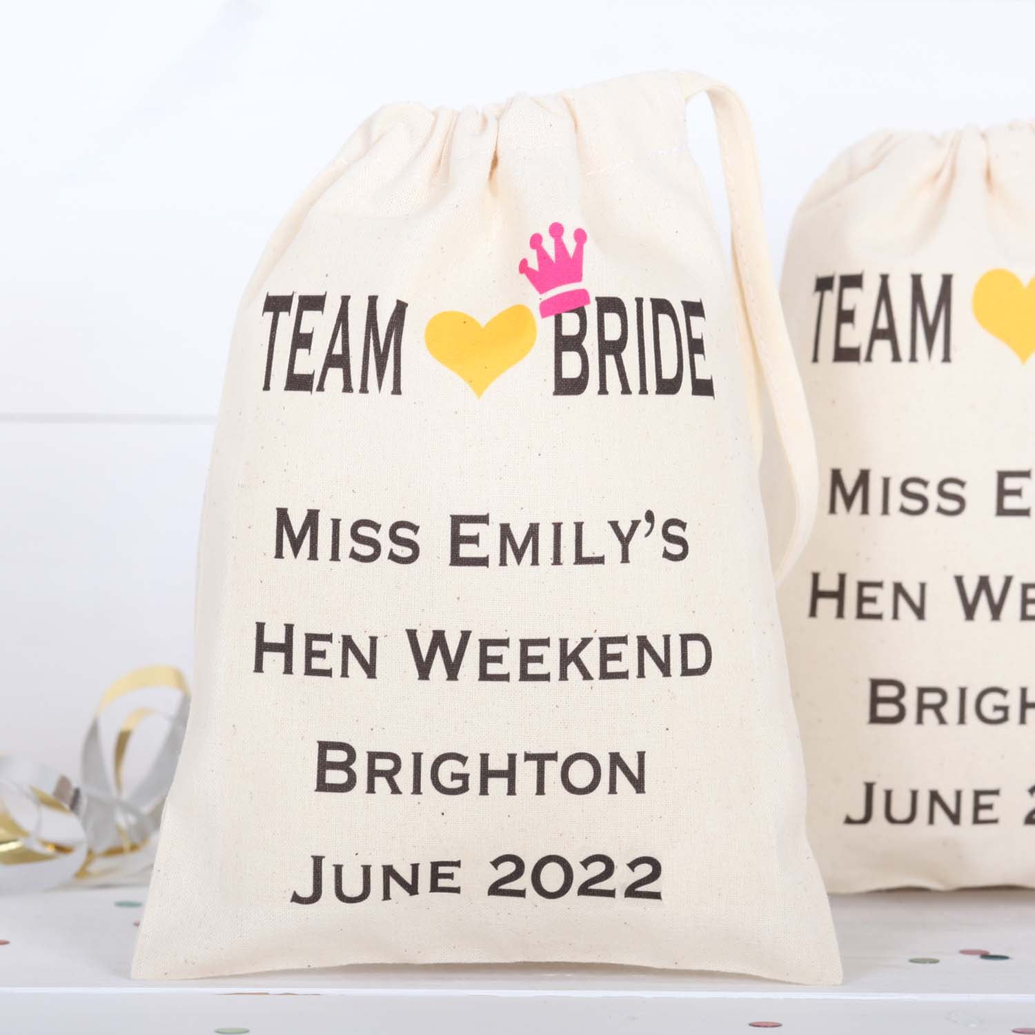 Our personalised cotton bags are a great way to hand out your hen parties favours. Great for on the night of the hen party or fill with rescue remedies for the morning after.