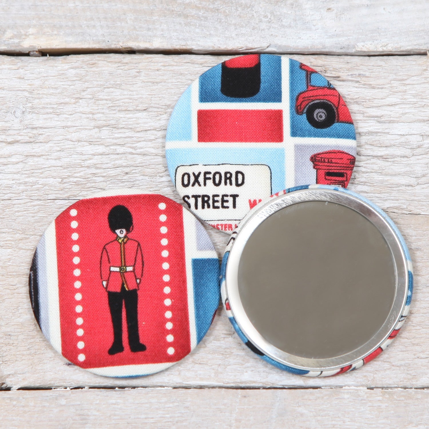 Stylish little mirror covered in fabric and supplied in an organza bag