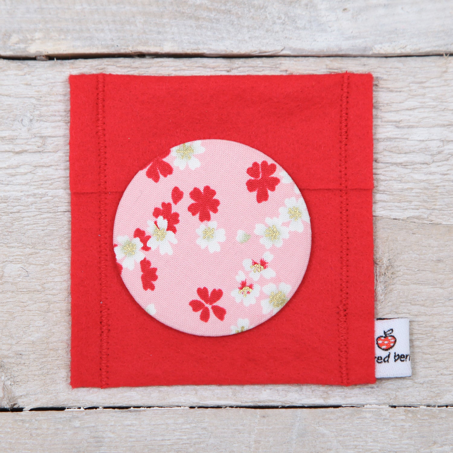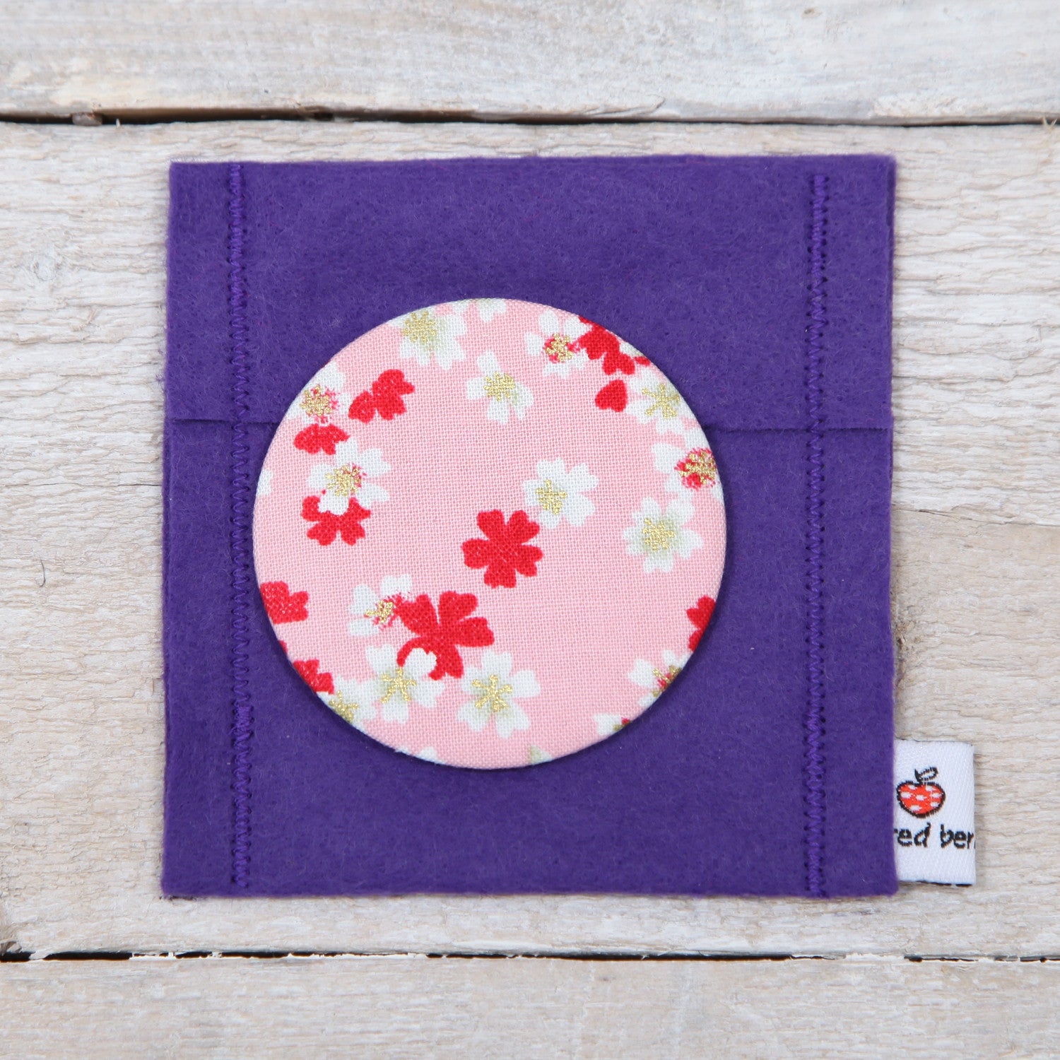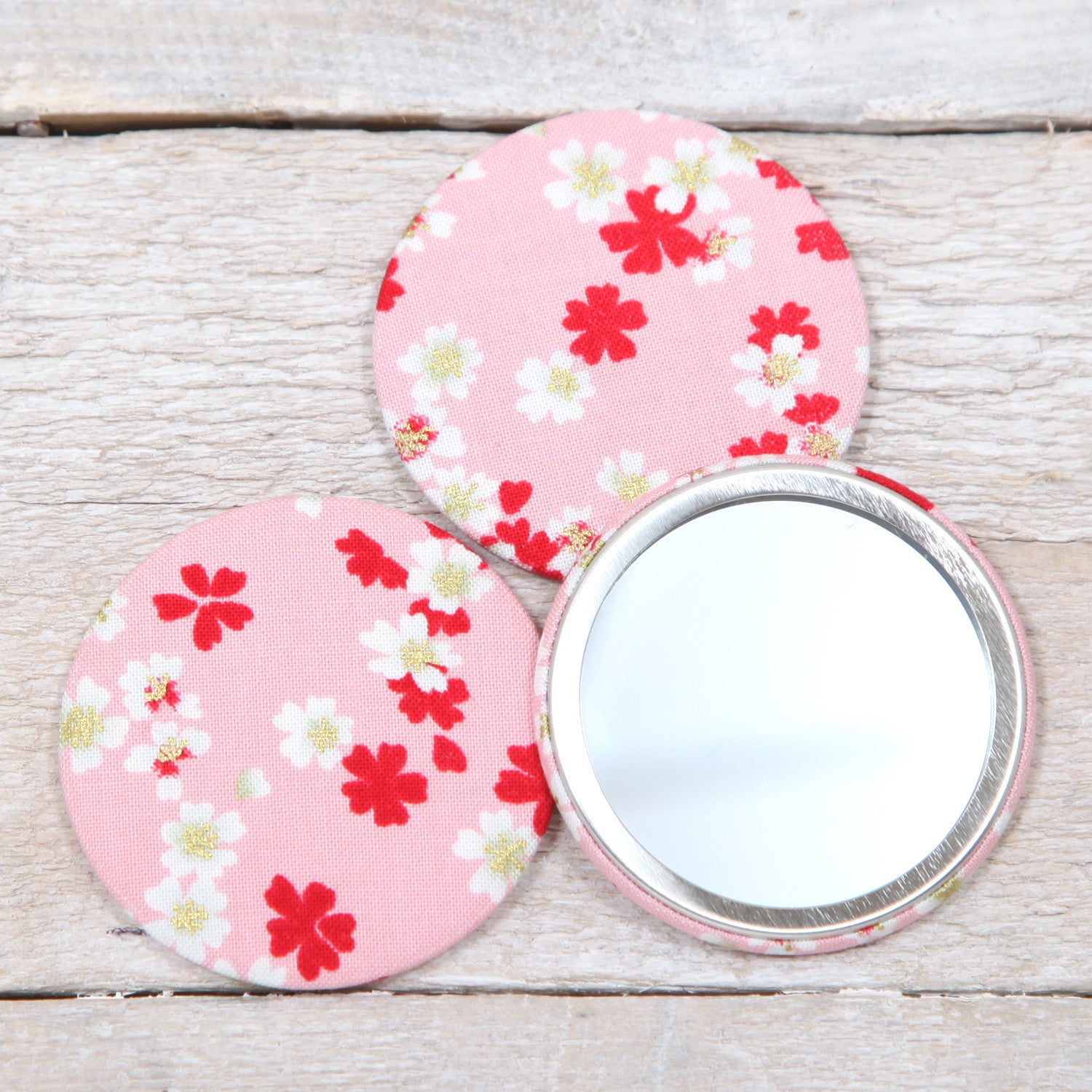 Each mirror has a delicate cherry blossom print with gold glitter accents and comes in a felt pouch to protect it ( colours may vary)
