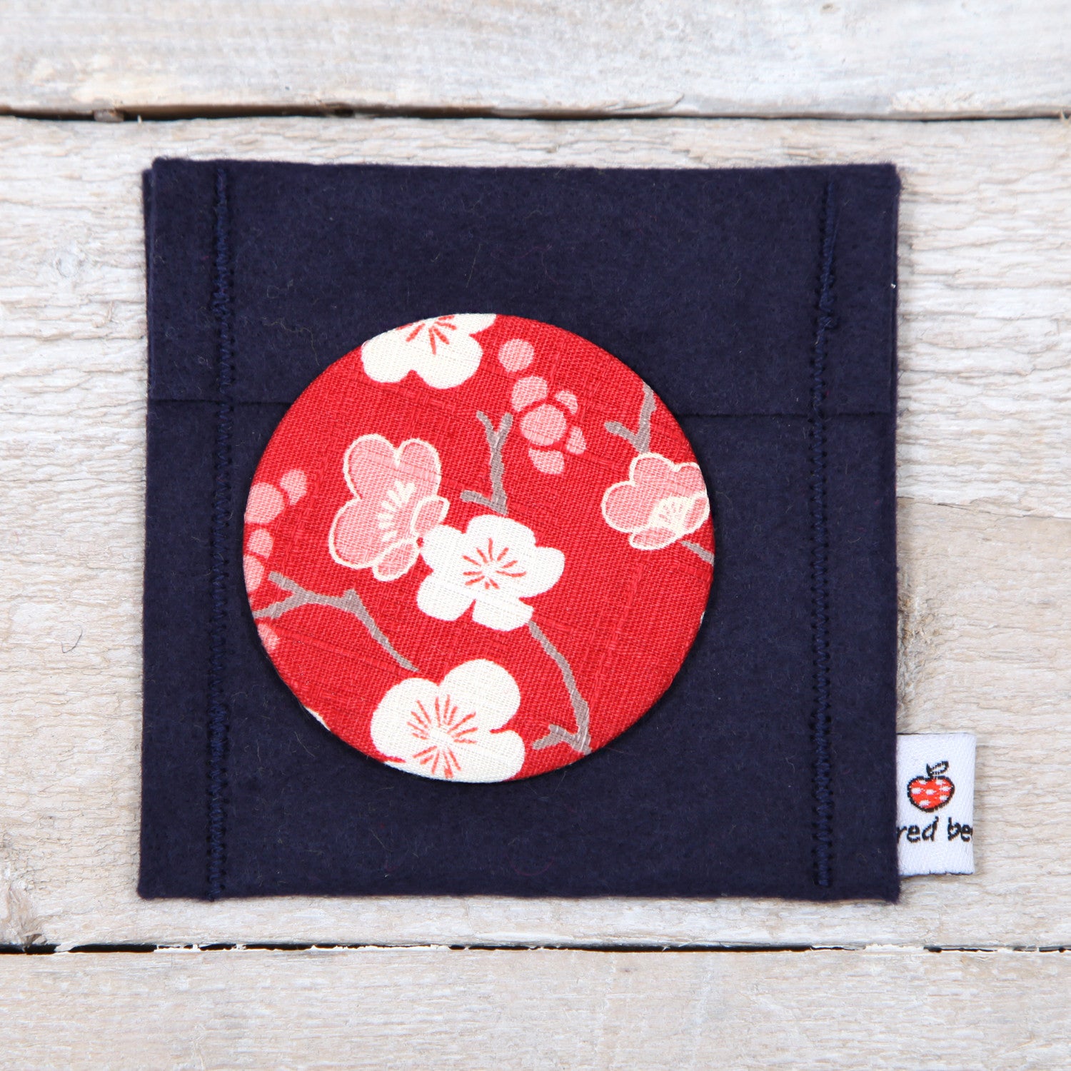 The red fabric has an elegant large oriental cherry blossom print and comes in a felt pouch to protect it (colours may vary)