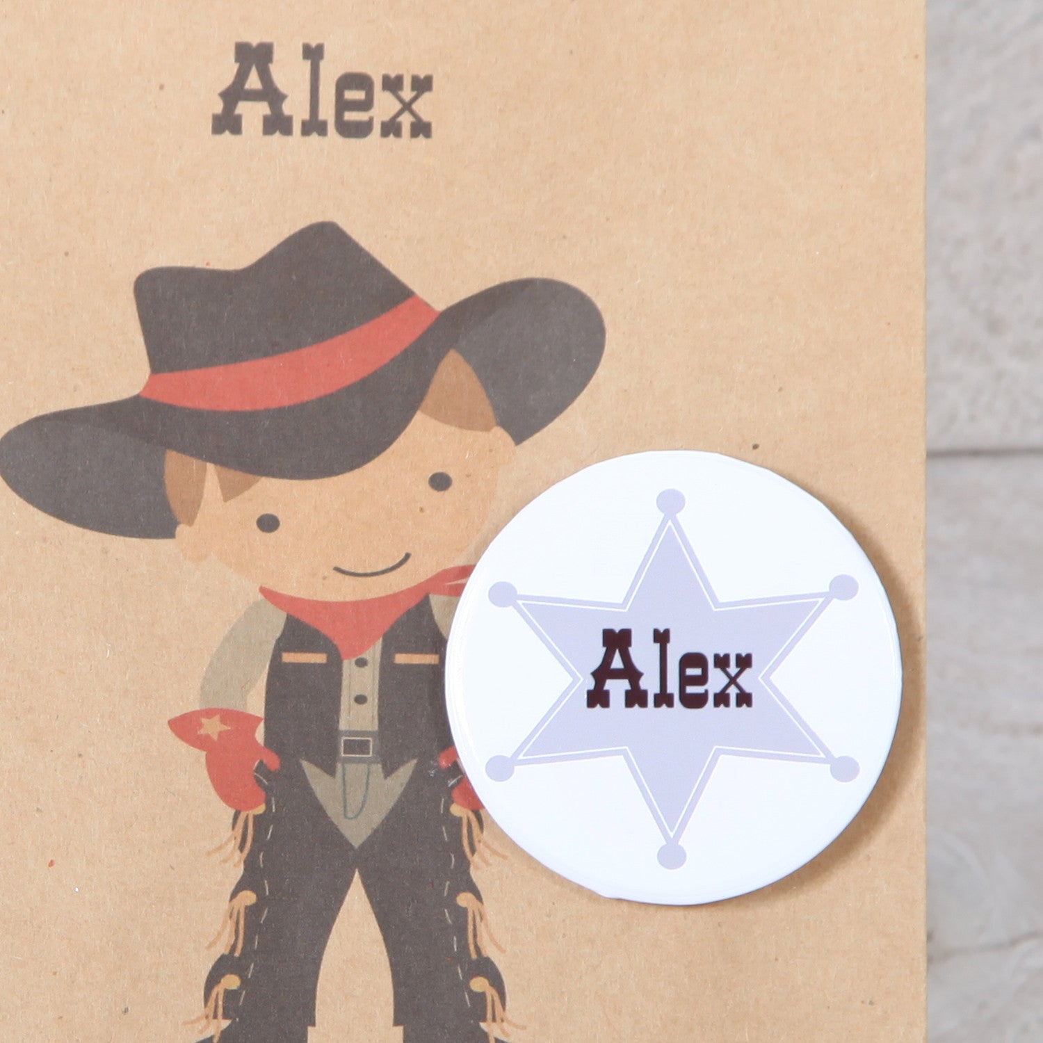 They are generously sized and have plenty of space for party favours and the cake. Matching sherifs badge also available