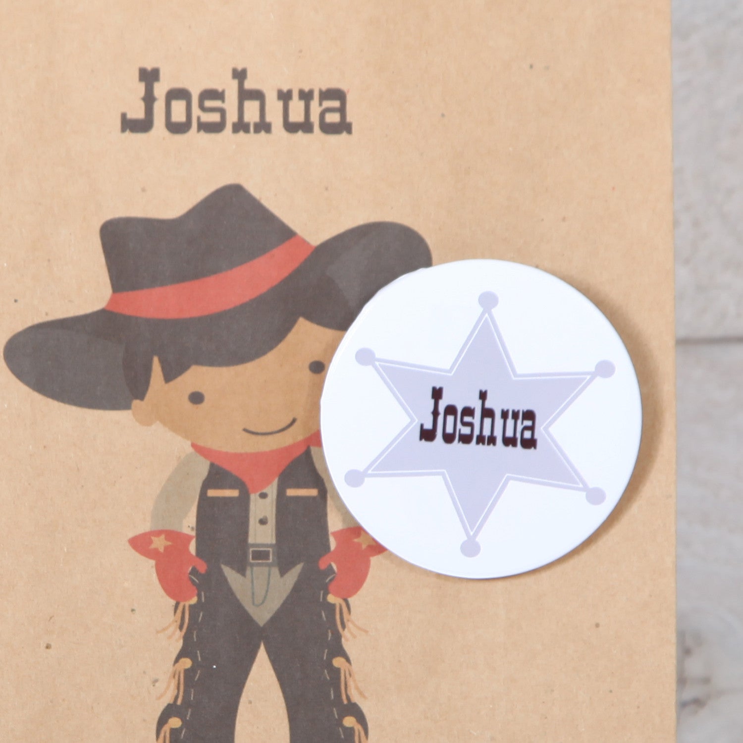 Our personalised cowboy party bags are great to give to your guests. Whether you're having a western or horse themed party we think your guests will be delighted with their very own party bag. A sheriffs badge is also available.