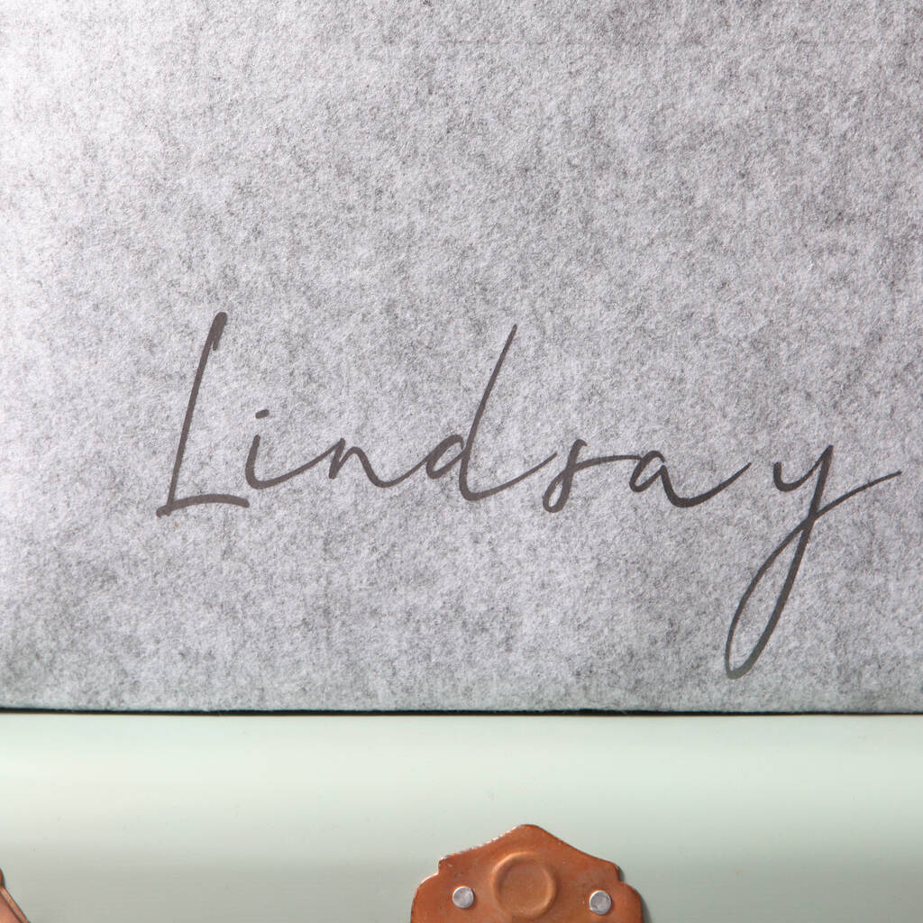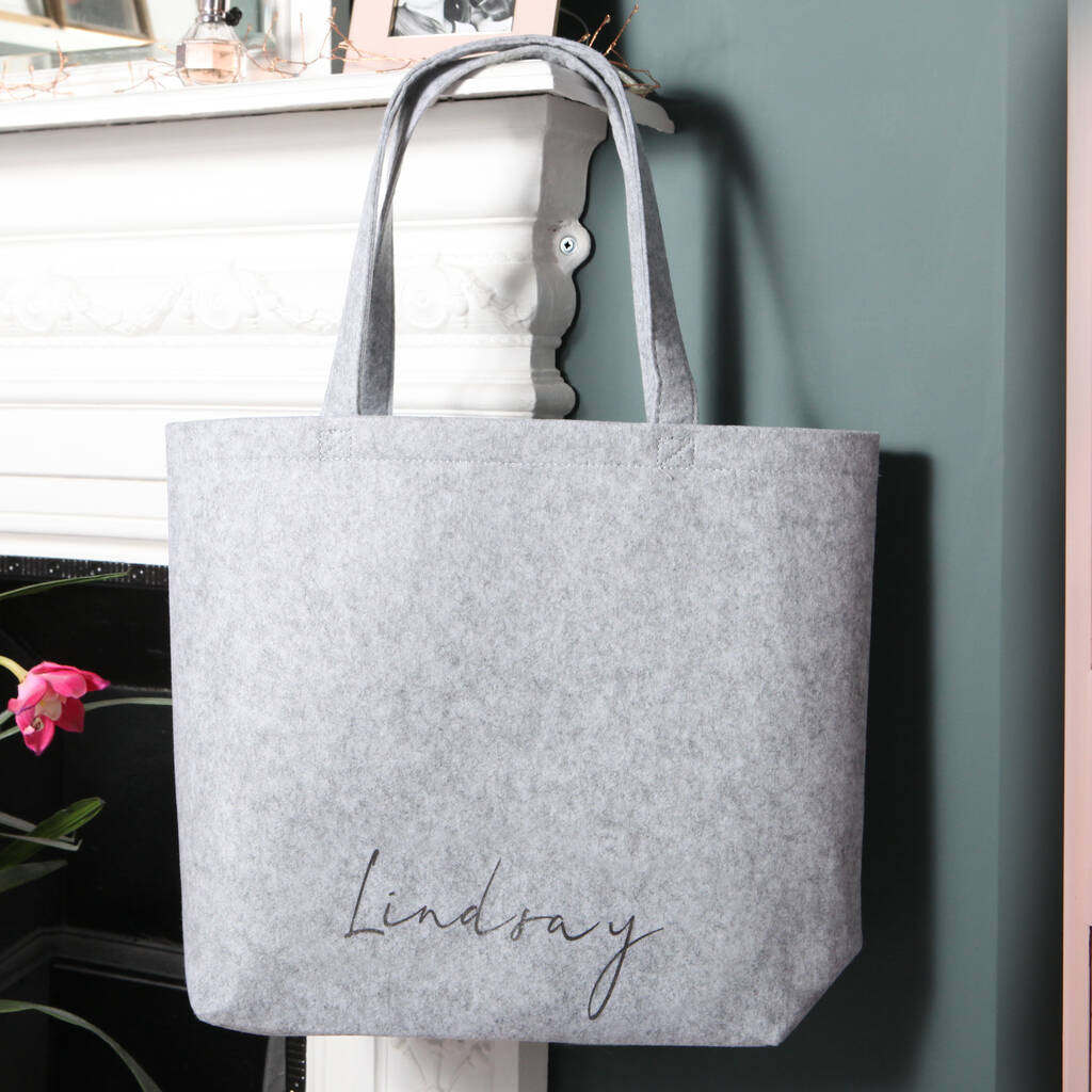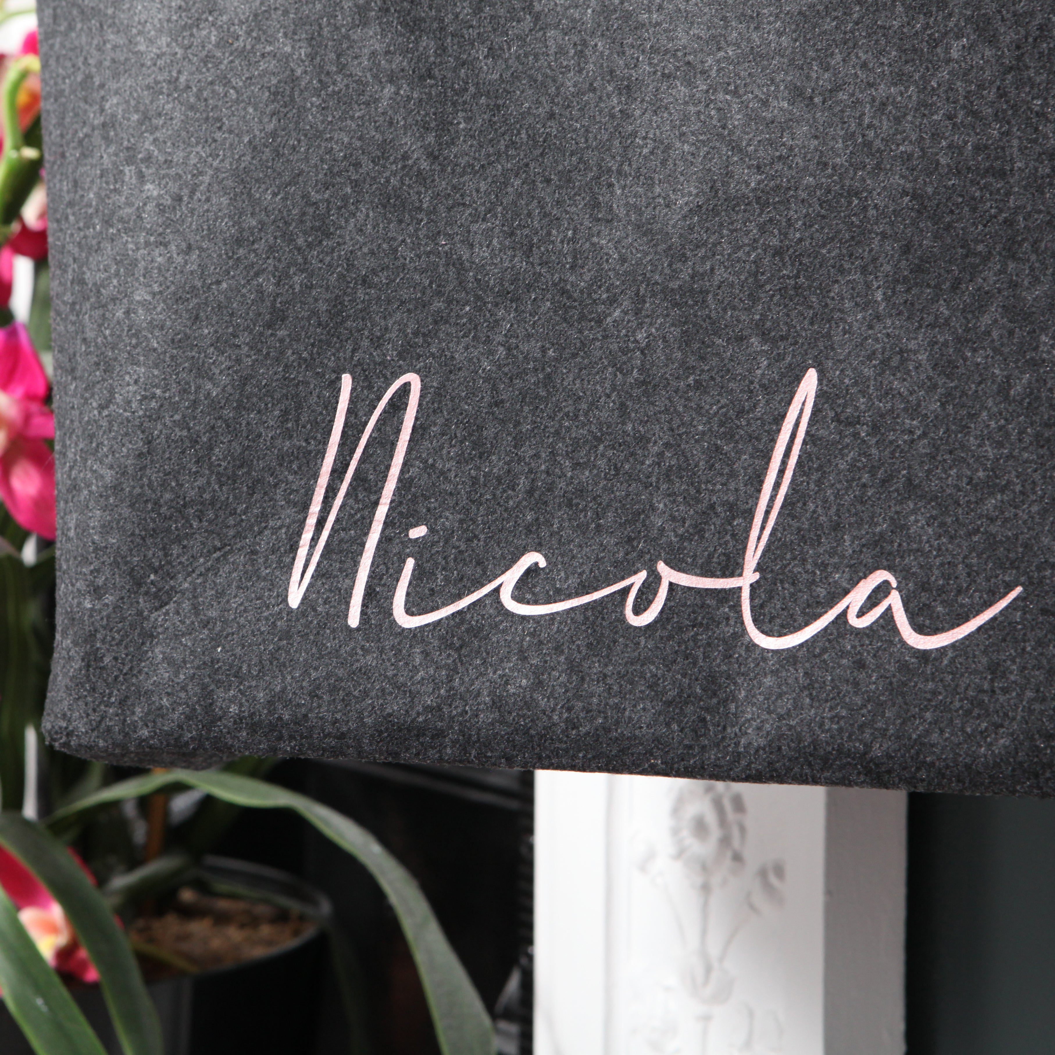 The gunmetal pearlised font is an elegant touch to this fab tote bag.