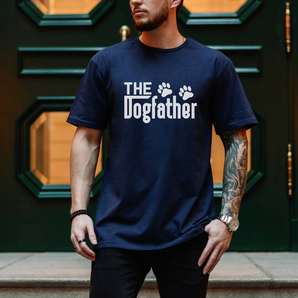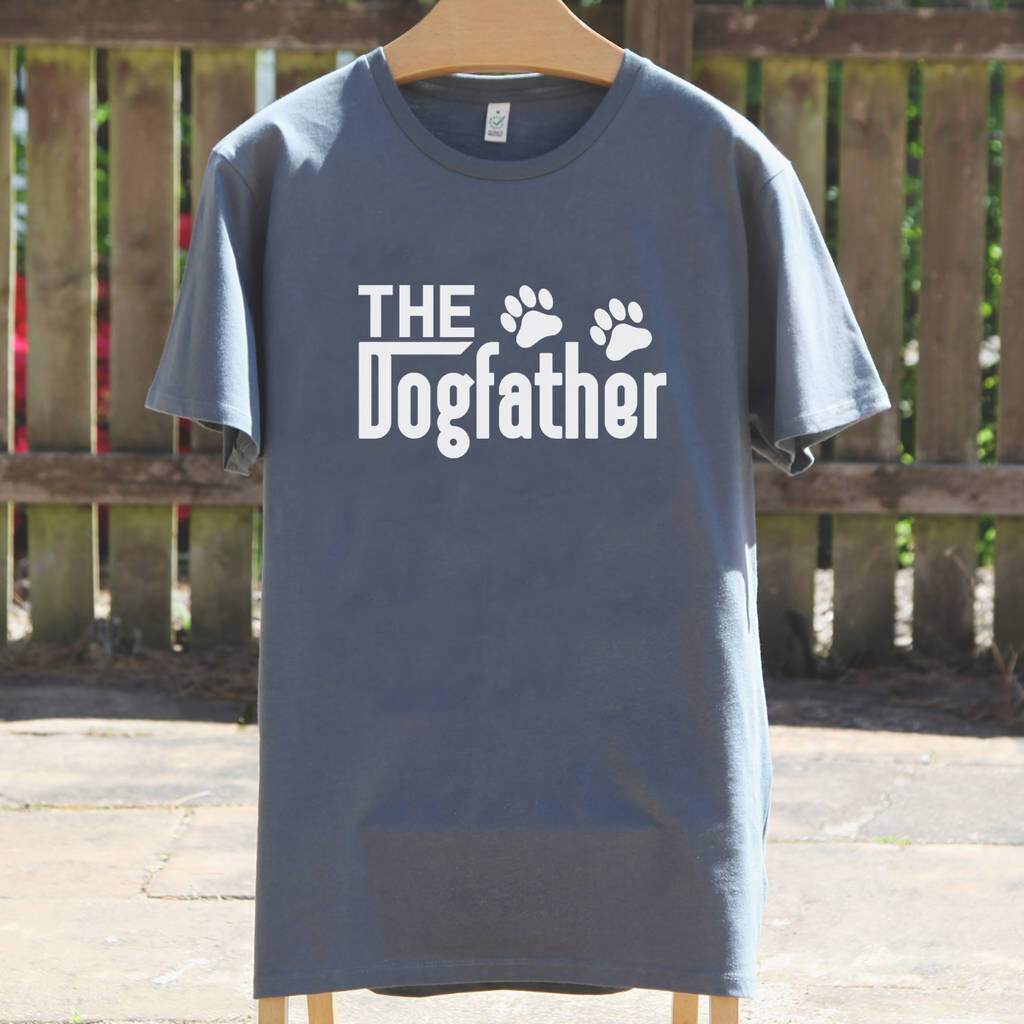 Wonderful organic cotton Dogfather t shirt that can be personalisation on the edge of the sleeve. A great Father's Gift for your dad this year